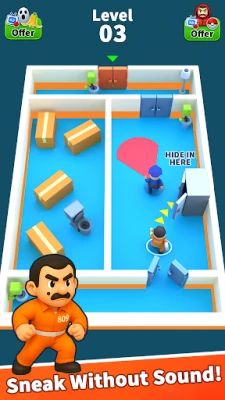 Αυτή η συναρπαστική εμπειρία προσφέρει ασταμάτητο gameplay που θα σας κρατήσει στην άκρη του καθίσματος. Αντιμετωπίστε προκλητικά επίπεδα με ολοένα και εξυπνότερους αστυνομικούς, ενώ η δυσκολία αυξάνεται σταδιακά. Ετοιμαστείτε για ξεκαρδιστικές στιγμές καθώς ξεγελάτε τους νόμους και σώζετε την ομάδα σας με απίστευτα κόλπα. Το "Silent Escape Hero: Thief Run" συνδυάζει την αγωνία μιας καταδίωξης με τη δράση μιας περιπέτειας απόδρασης από τη φυλακή, προσφέροντας έναν μοναδικό συνδυασμό. Για όσους αναζητούν την απόλυτη πρόκληση στην τέχνη της απόδρασης, το "Sneak & Escape: Prison Run" αποτελεί το ιδανικό πεδίο δράσης για να αναδειχθείτε ως ο αληθινός ήρωας της ληστείας και να κατακτήσετε τους πίνακες κατάταξης.