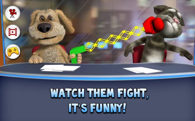 Ετοιμαστείτε για μια μοναδική εμπειρία γέλιου και ψυχαγωγίας! Φανταστείτε τον Tom και τον Ben, το αχτύπητο δίδυμο, να σας περιμένουν στο δικό τους τηλεοπτικό στούντιο. Εδώ, κάθε σας λέξη αποκτά νέα διάσταση, καθώς οι δύο τους αναλαμβάνουν να επαναλάβουν εκ περιτροπής ό,τι πείτε, δημιουργώντας ένα απολαυστικό ντουέτο. Αλλά η διασκέδαση δεν σταματά στην ομιλία! Με ένα απλό άγγιγμα ή ένα σάρωμα στην οθόνη, μπορείτε να προκαλέσετε ξεκαρδιστικές ανατροπές, βλέποντας τον Tom και τον Ben να χάνουν την ισορροπία τους και να πέφτουν από τις καρέκλες τους με τον πιο θεαματικό τρόπο.