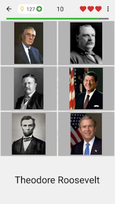 Είστε λάτρεις της Αμερικανικής Ιστορίας; Αναγνωρίζετε αμέσως τις εμβληματικές μορφές του Λευκού Οίκου, από τον Αβραάμ Λίνκολν και τον Θεόδωρο Ρούζβελτ μέχρι τον Άντριου Τζάκσον και τον Οδυσσέα Σ. Γκραντ; Αυτή η εφαρμογή σας προσκαλεί σε ένα συναρπαστικό ταξίδι μέσα από την ιστορία των Ηνωμένων Πολιτειών, προσφέροντας την ευκαιρία να γνωρίσετε κάθε Πρόεδρο, ακόμα και εκείνους που ενδεχομένως να μην είναι τόσο γνωστοί, όπως ο Τζέιμς Μονρόε και ο Τζέιμς Κ. Πολκ. Δοκιμάστε την ικανότητά σας να αντιστοιχίζετε πρόσωπα με ονόματα και να εμβαθύνετε στην πολιτική κληρονομιά της Αμερικής, ξεκινώντας από τους ιδρυτές μέχρι τους σύγχρονους ηγέτες.