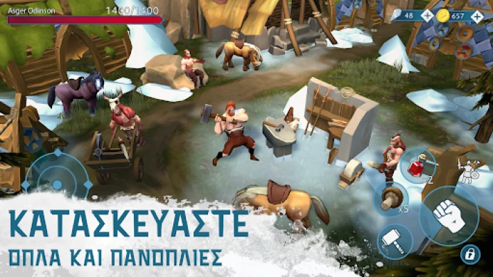 Ακονίστε τα πολεμικά σας ένστικτα και ετοιμαστείτε για μάχη. Δημιουργήστε ένα οπλοστάσιο από τσεκούρια, σπαθιά, τόξα και δόρατα, αναβαθμίστε τα για μέγιστη αποτελεσματικότητα και κοσμήστε τα με πολύτιμους λίθους για να ενισχύσετε τις ιδιότητές τους. Αντιμετωπίστε στρατούς του Ragnarok, δαιμόνιους αρχηγούς ληστών και άλλους θανάσιμους αντιπάλους, αποδεικνύοντας την αξία σας ως αληθινός πολεμιστής. Η γη του Vinland είναι γεμάτη κινδύνους, αλλά και ευκαιρίες για δόξα.